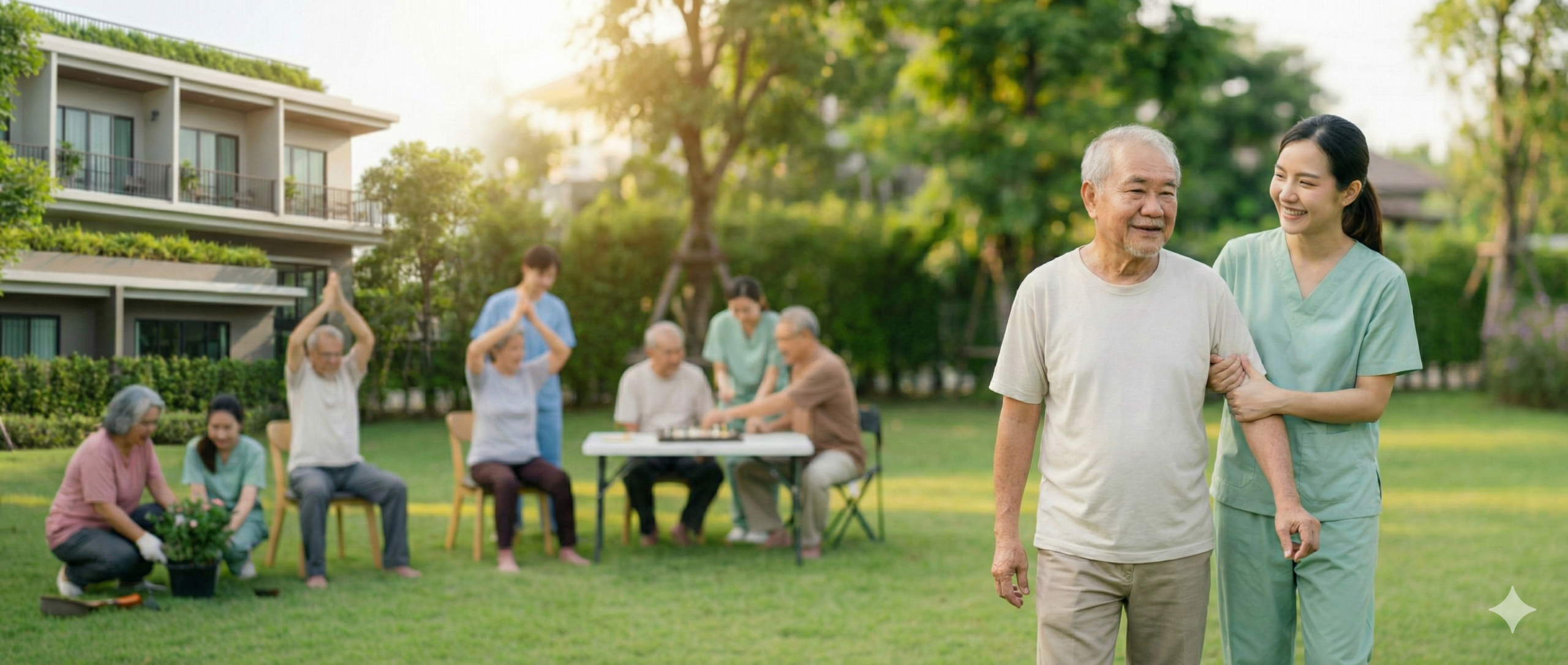 ✅ เรามุ่งเน้นการดูแลทั้งด้านร่างกายและจิตใจ ด้วยแผนการดูแลที่ออกแบบเฉพาะบุคคล ครอบคลุมทั้งโภชนาการที่เหมาะสม กิจกรรมส่งเสริมสุขภาพ การทำกายภาพบำบัด และการเฝ้าสังเกตอาการของโรคอย่างใกล้ชิด เพื่อให้ผู้สูงอายุได้รับคุณภาพชีวิตที่ดีที่สุด ในสภาพแวดล้อมที่ปลอดภัยและอบอุ่นเหมือนบ้าน